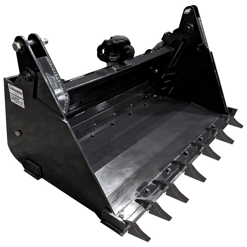 Our commercial 4 in 1 combo bucket is built with versatility and indestructibility in mind. Used for dozing, land leveling, grappling, dumping, digging, grading and a host of other applications this is one of the most useful attachments you can buy. Using 3 reversible, replaceable cutting edges, fully gusseted sides, fully protected cylinders, and reinforced bottom. This is the biggest and heaviest combination bucket on the market. Our bucket is designed to last years and years of rigorous use by contractors, excavators, farmers or anyone needing a versatile attachment to do it all! Available in 3 sizes, 72″, 78″, and 82″. We will make sure you have the right size for your machine. We can also equip any 4 in 1 with replaceable tip excavator teeth!