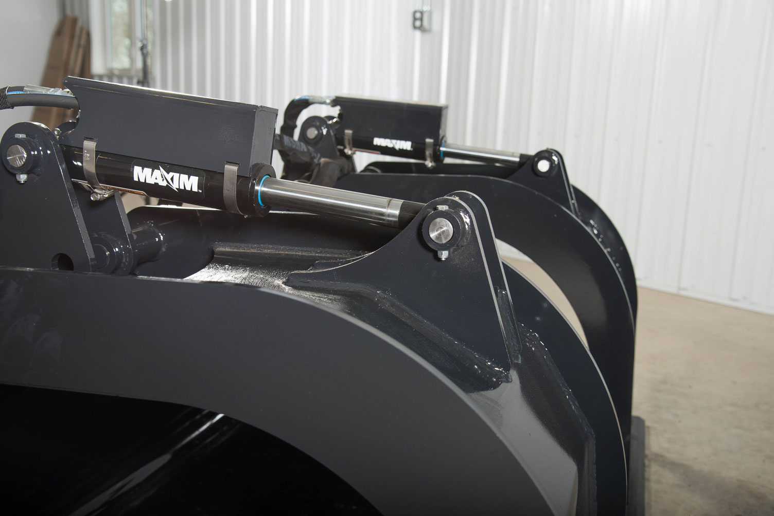 Dual cylinder grapples open and close together but close to different levels making them ideal for grabbing and holding uneven loads in the bucket. Visibility slots are available for those who require more visibility for digging and brush work with the grapple claws up.