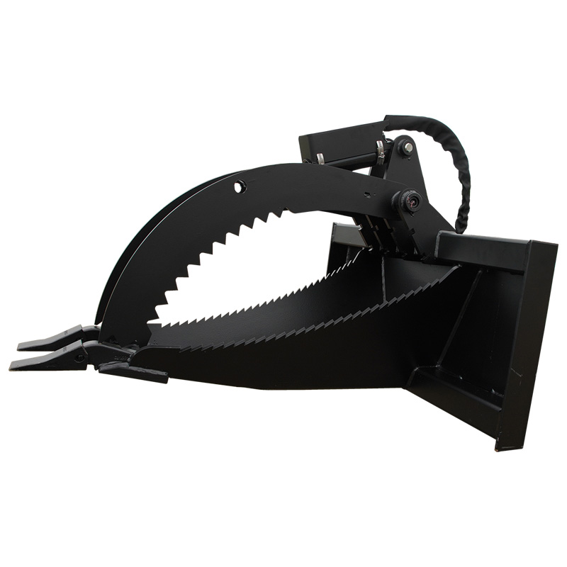 The Jenkins Mini Brush Grapple is engineered to make quick work of tough jobs. Its unique serrated teeth are designed for a firm bite, allowing you to easily move logs, brush, trash, large rocks, and demolition debris. The grapple features a 3-inch spacing between the teeth, ensuring a precise grip on all materials. Equipped with a powerful 2-inch cylinder, it provides a reliable hold even under pressure. Bolt-on, removable side plates add versatility to adapt to various jobs, while greasable pivot points ensure durability and easy maintenance, even in demanding environments.